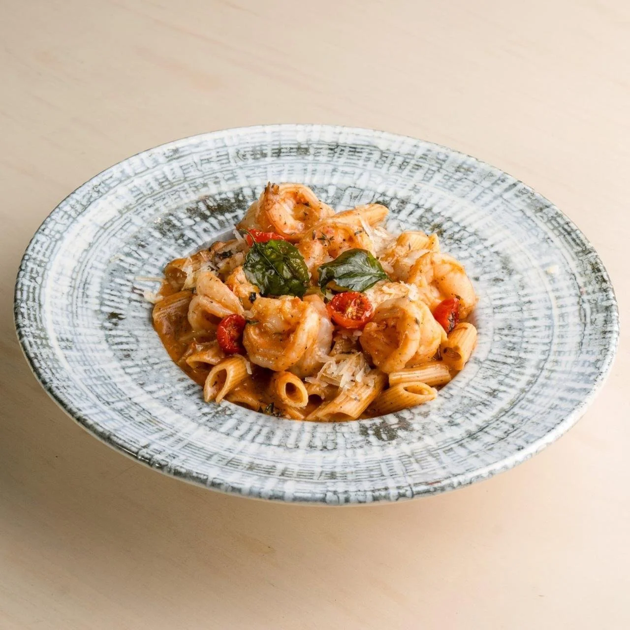 Sauté Shrimp, creamy pink sauce, herb & parmesan cheese.